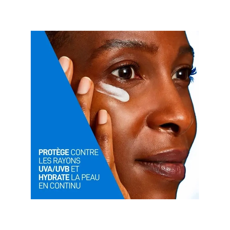 Développée avec des dermatologues, cette crème hydratante contient une protection solaire à large spectre pour protéger la barrière cutanée contre les rayons UVA/UVB. Sa texture légère apporte une hydratation continue tout au long de la journée.